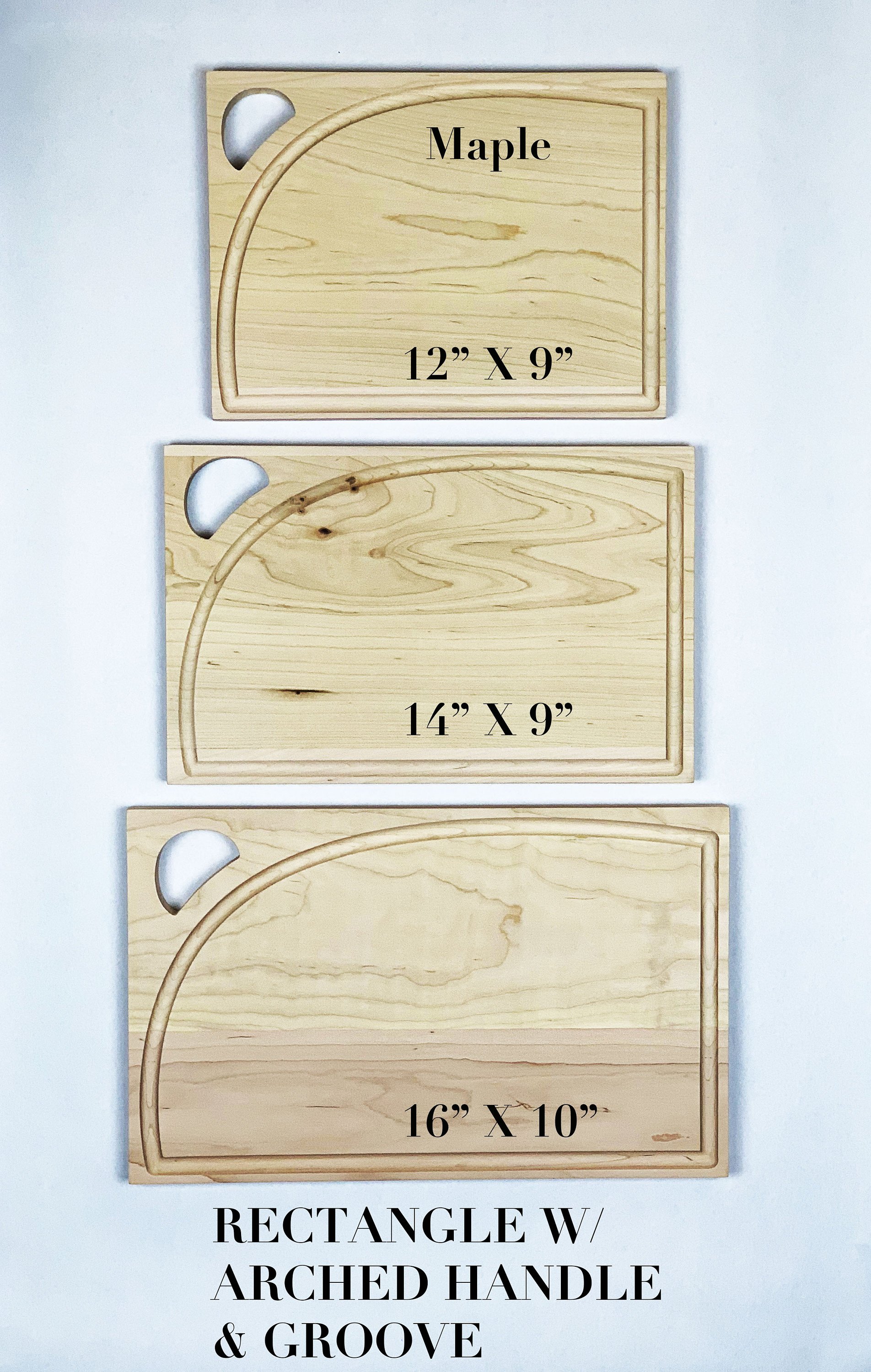 All boards are made by us from lumber we purchase locally and sanded multiple times to provide the smoothest product. We offer the option of sending a proof prior to laser engraving your item. Select the design you'd like and the material.